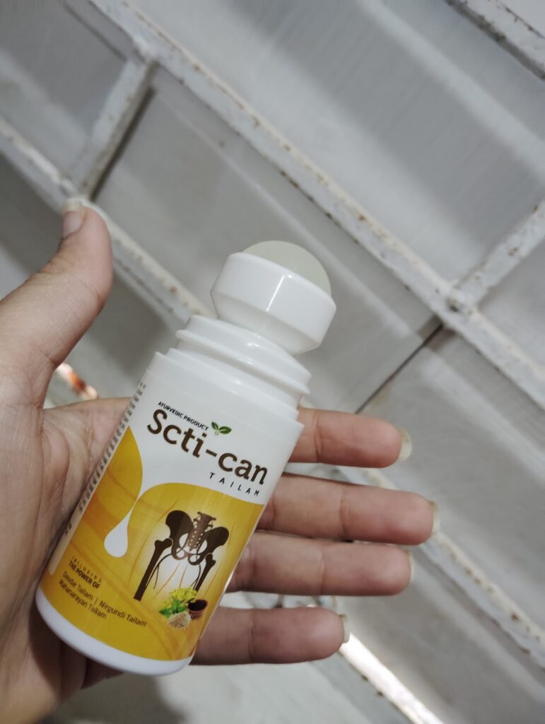 Scti-can Tailam is a specialized Ayurvedic formulation designed for Sciatica Care and effective support in sciatica for pain. Enriched with time-tested oils like Deodar Tailam, Nirgundi Tailam, and Mahanarayan Tailam, it works through deep tissue penetration to provide pain relief for sciatica in leg and back. This unique blend supports sciatica by easing muscle stiffness, promoting flexibility, and offering comfort in sciatica physical therapy sessions. Regular massage with Scti-can Tailam helps to relieve sciatica pain instantly, promoting mobility and natural balance in the lower back and legs.